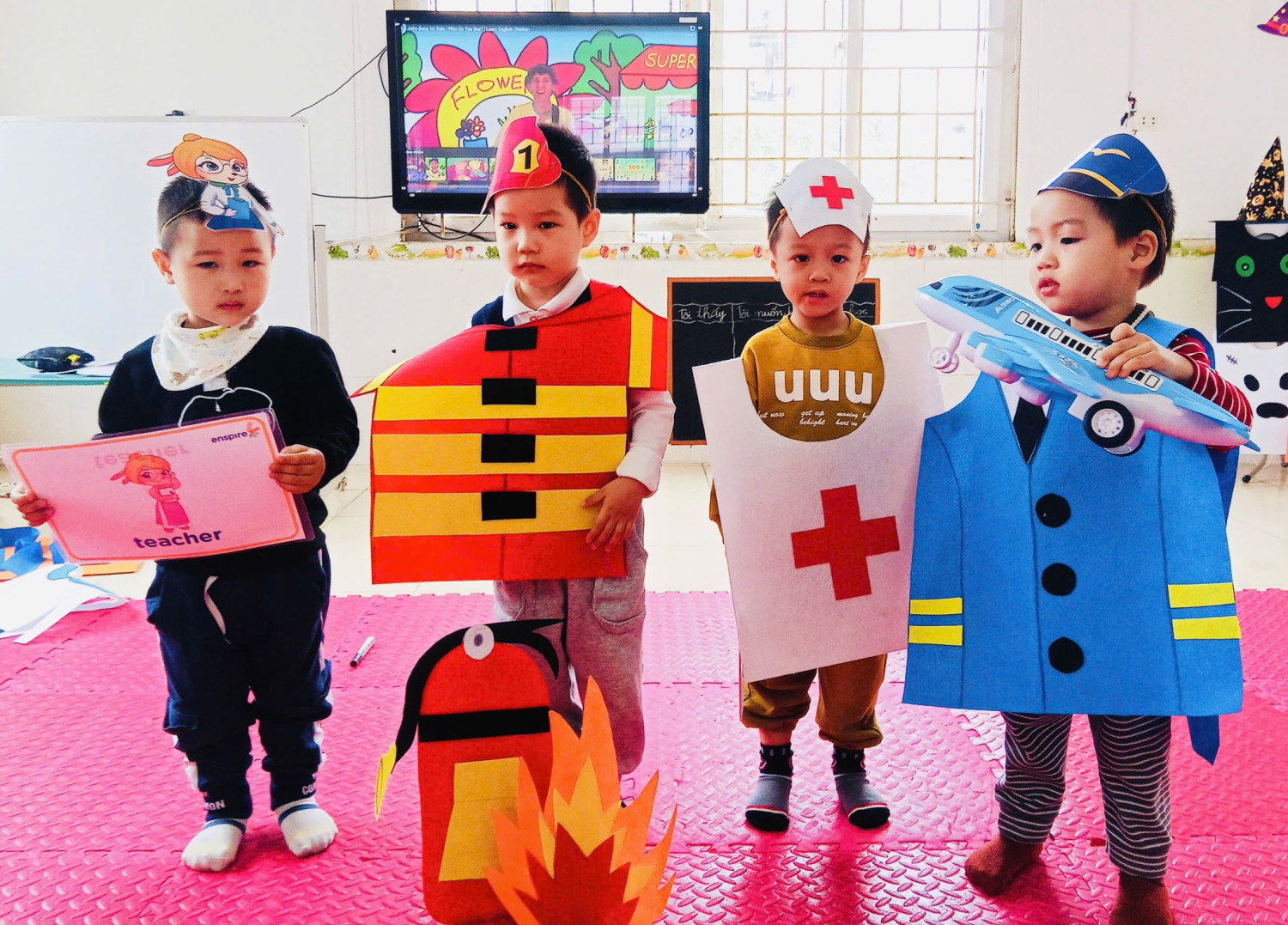 ở trường mầm non Hoa Hồng của chúng mình- Học Tiếng Anh ư? 🧐🥸🤔- Không!🙅🏼♂️